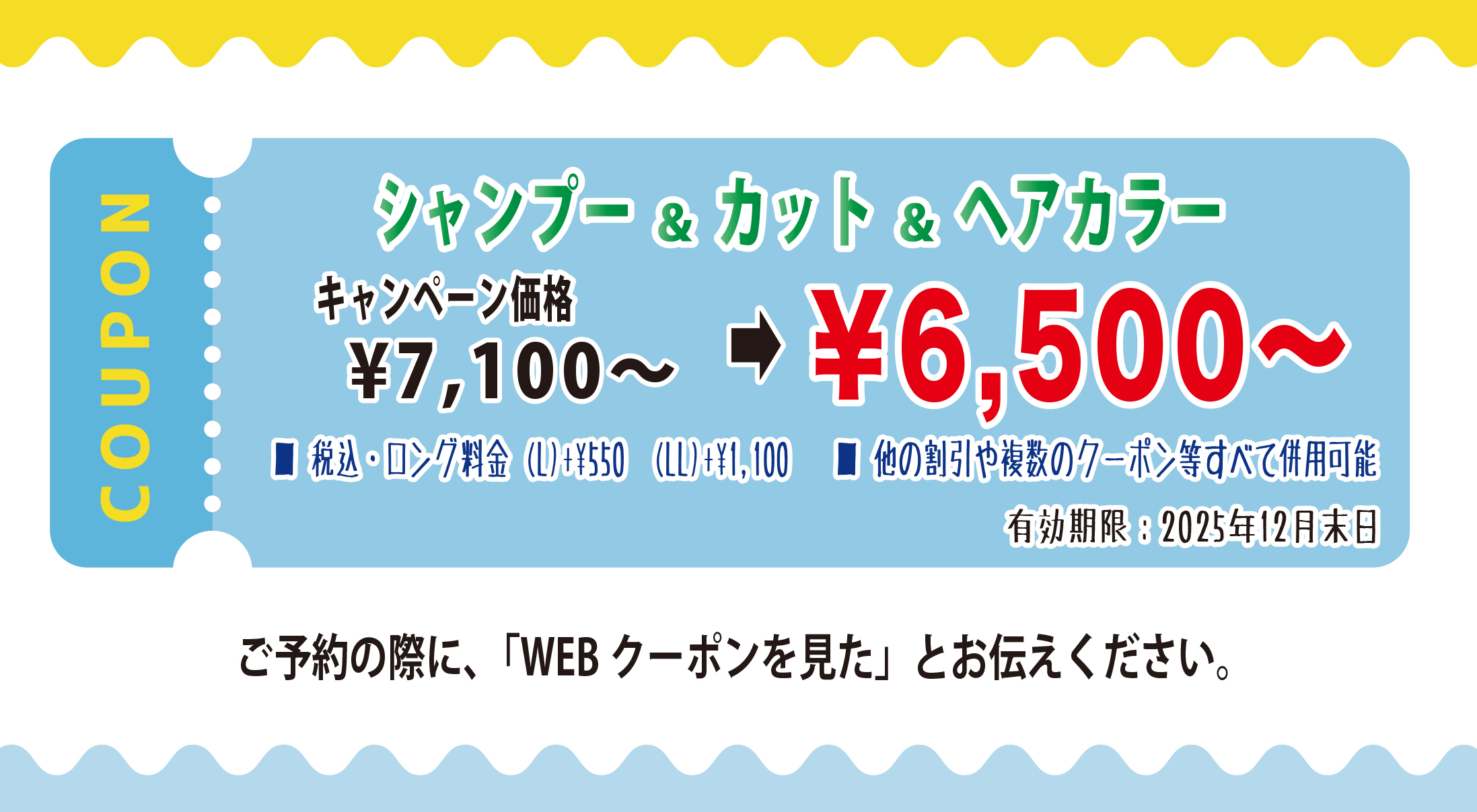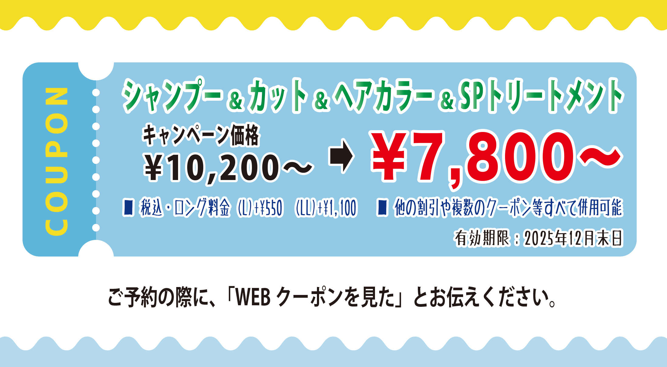 ●クーポンご利用の際は、必ずご予約時 に「WEBクーポンを見た」とお伝えのうえ、ご来店時にクーポンをご提示ください。